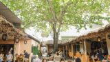 中庭をぐるりと囲むようにして、カフェの席がありました。