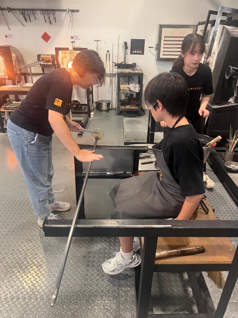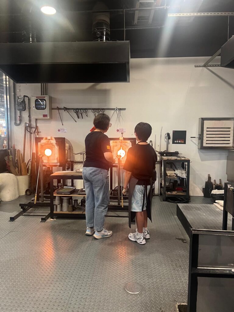 そこで、ママが予約してくださっていたガラス工房体験に行ったようで。