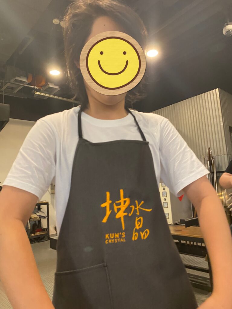 写真のエプロンを見ると、Kun’s Crystalというお店ですね。