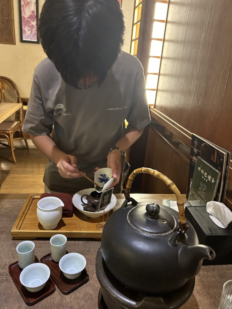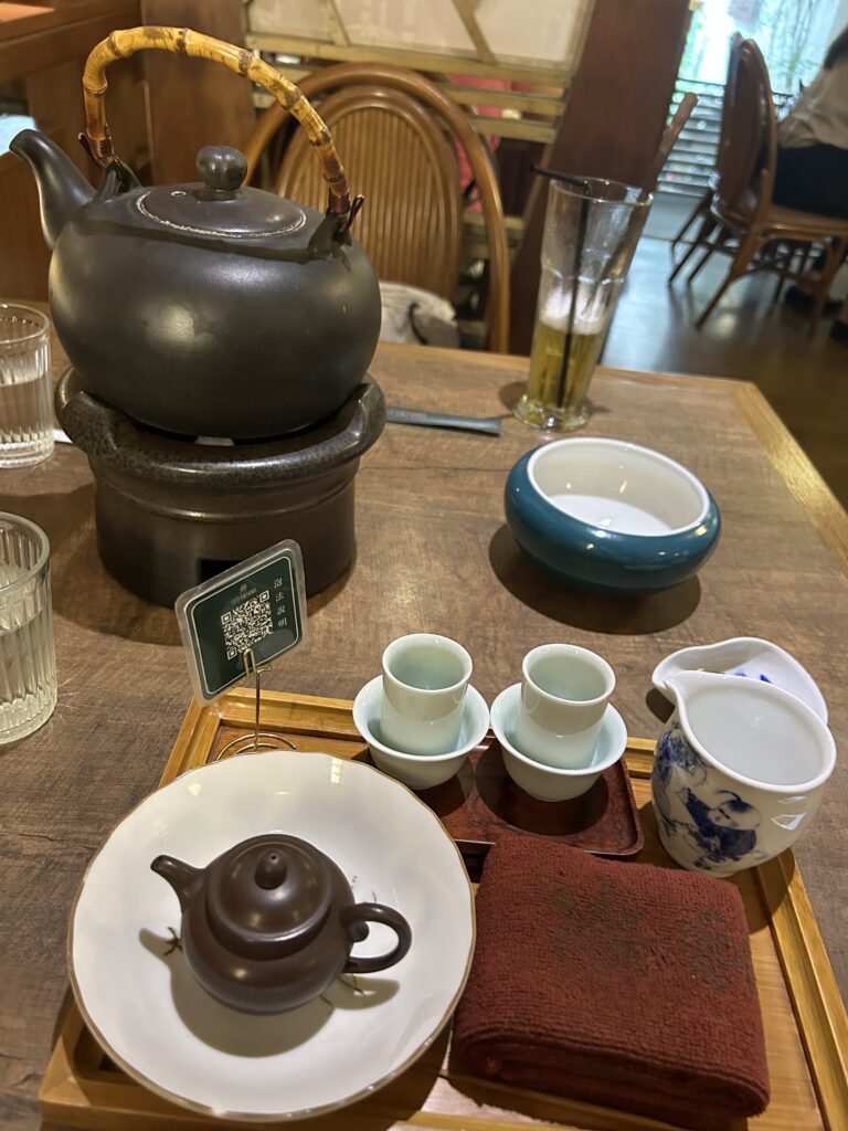 こちらはお茶だけでなく、点心などの食事が充実していて、ランチにもちょうど良い茶藝館でした。精進点心なので、お肉は使わない野菜だけの餃子や麺料理でしたけど、味付けはしっかりしていて、お茶によく合って美味しかったです。