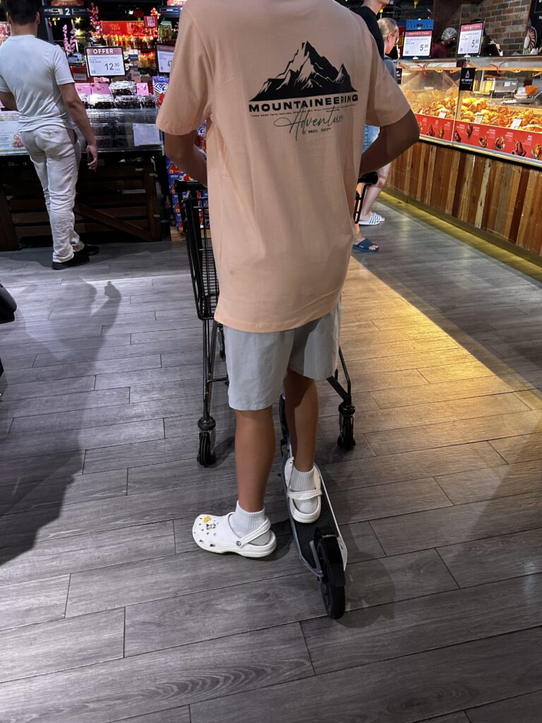 しかもキックスクーターと買物カートを組み合わせて押そうとするので