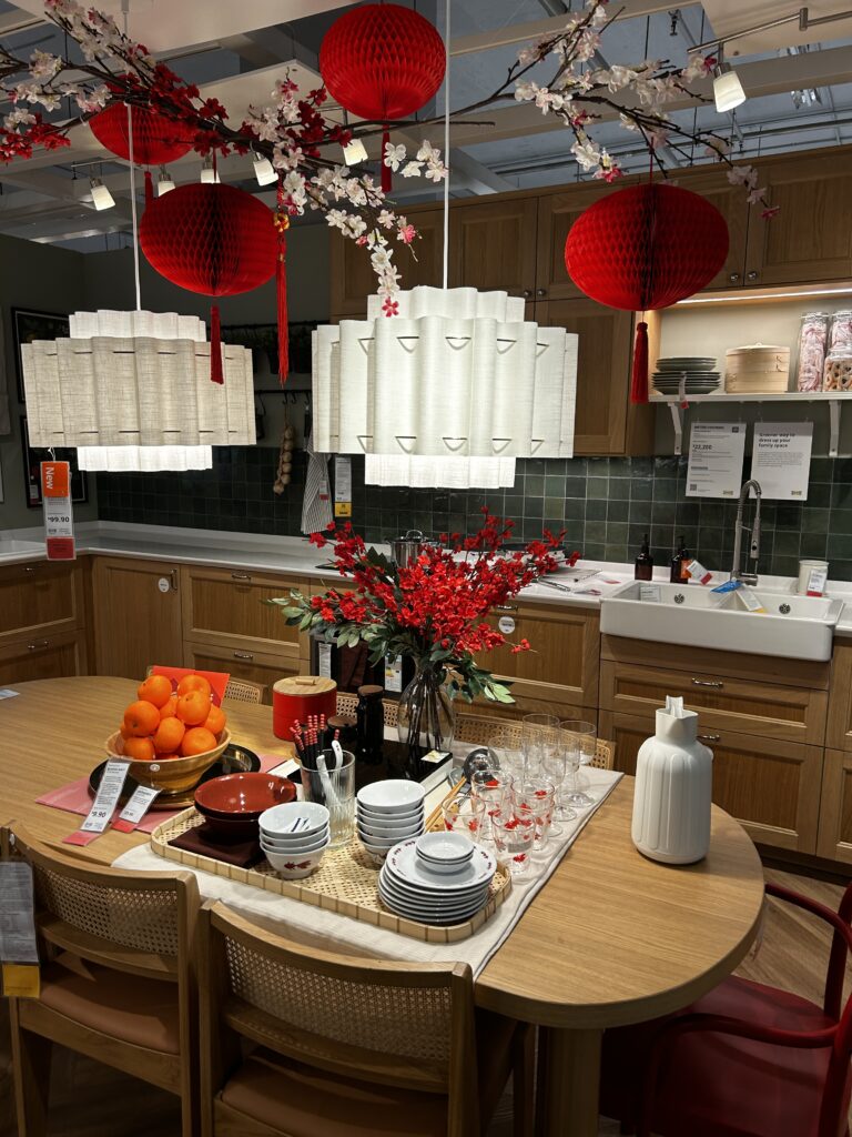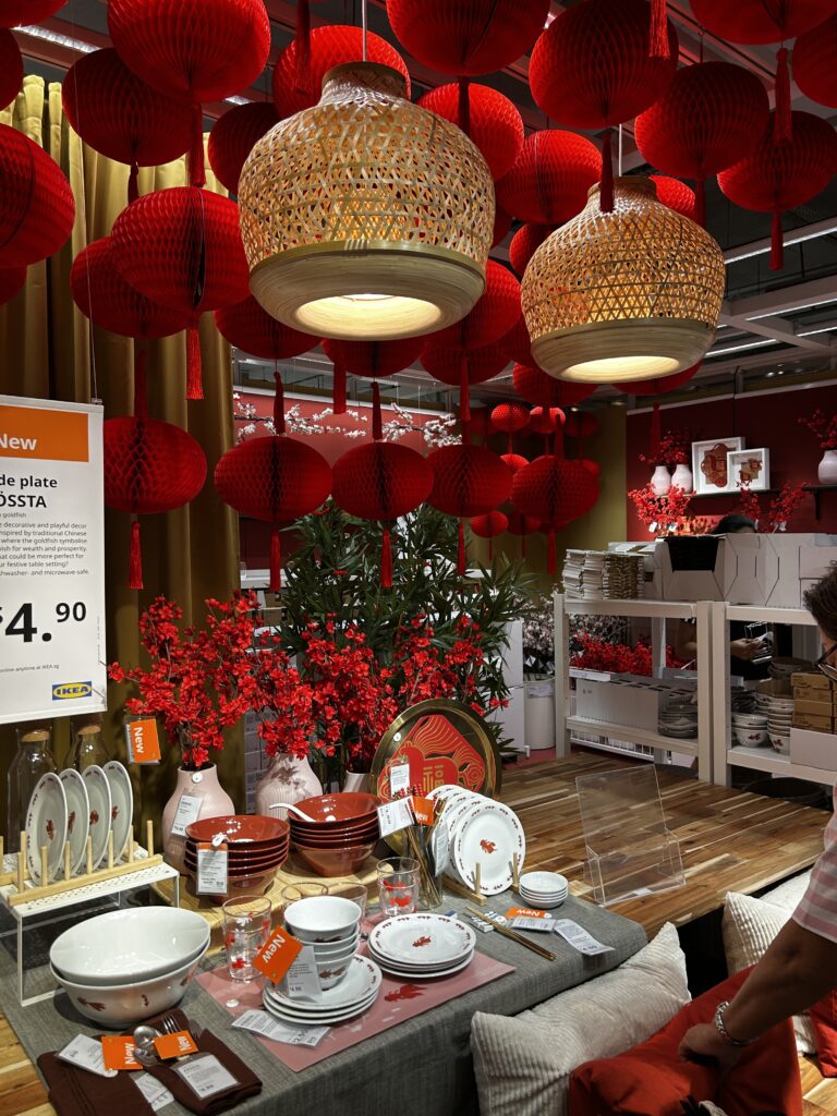 すっかり旧正月のインテリアになっていて華やかなIKEAの店内。