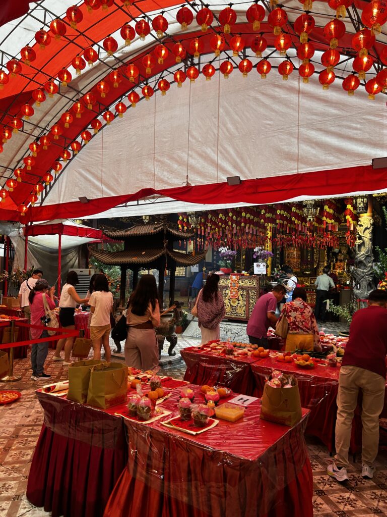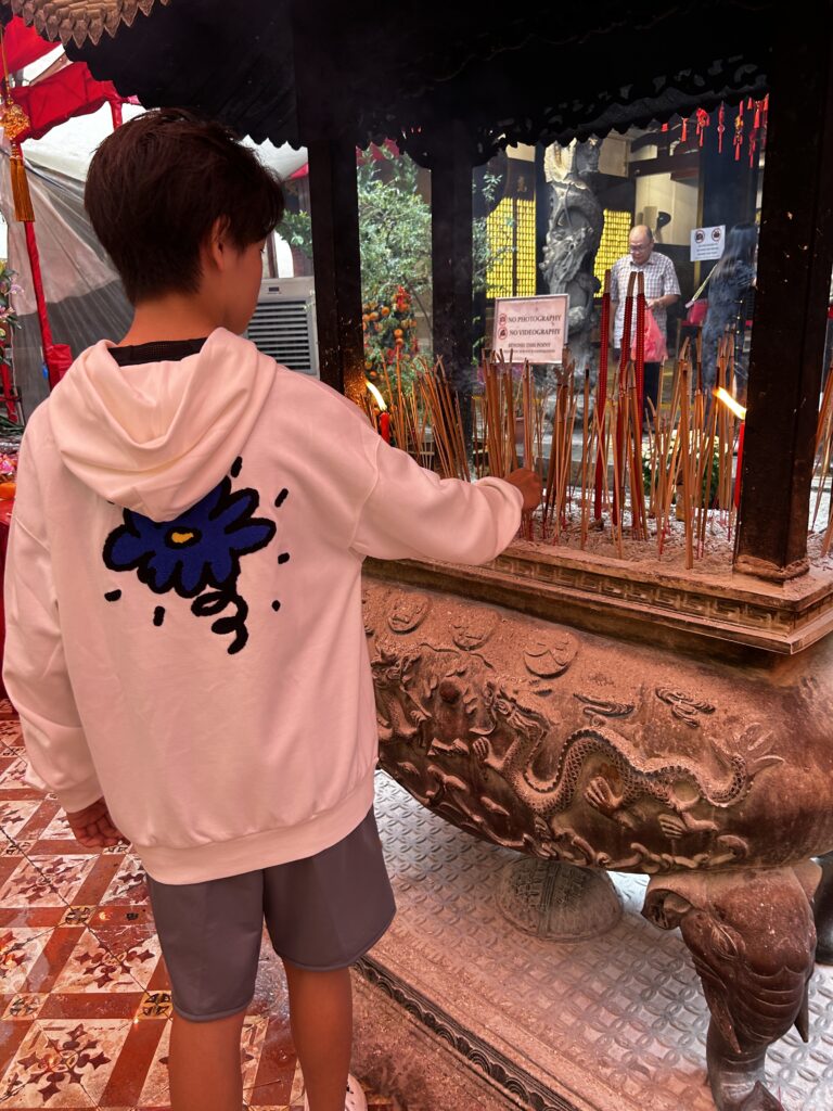 息子にとってはシンガポールのシアンホッケン寺院のこの赤い世界が、初詣なんだなぁ。