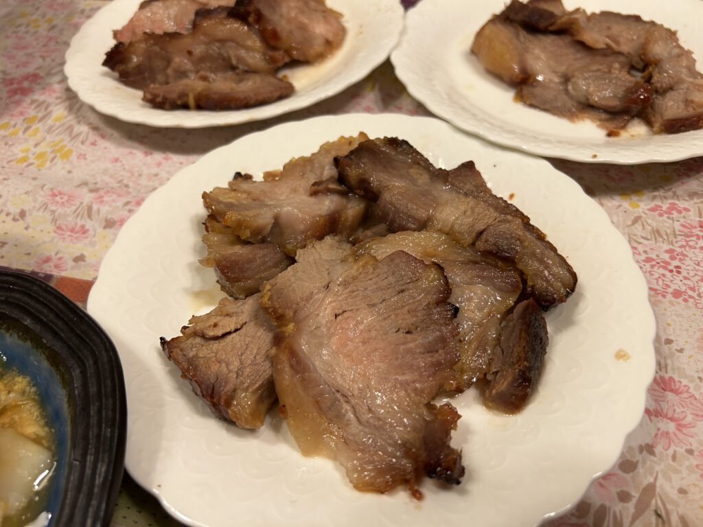 夜ご飯は、夫の大好物!お義母さんの手作り焼き豚でした。