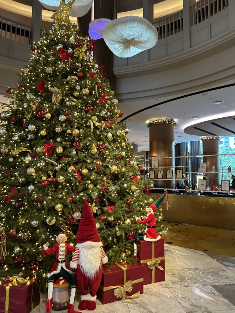 この時期はもうクリスマス飾りで、どこのホテルロビーも華やかです。