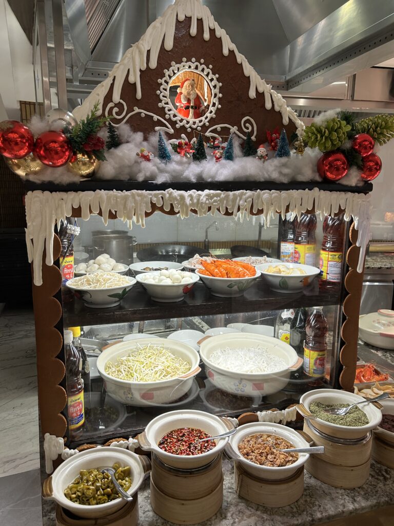 クリスマスディスプレイだけどローカルの麺コーナーというのがシンガポール。