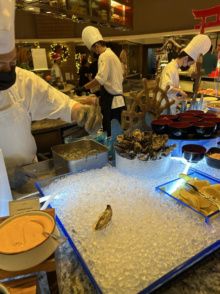 ここのブッフェは目の前で殻を開けてくれる生牡蠣が良いとシンガポール人の同僚たちから聞いていたので、楽しみにしてました。