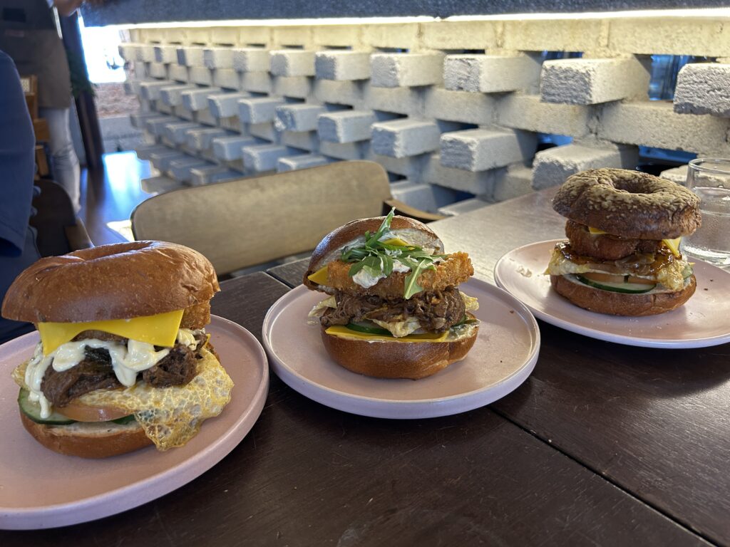 朝からヘビー級のベーグルで驚きましたけど