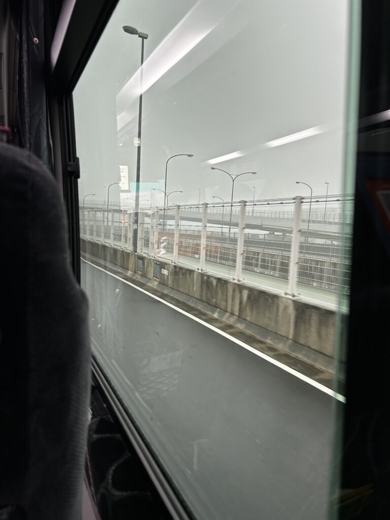 関空から梅田に向かうバスで橋を渡る時は、霧で大阪湾がまったく見えないくらいの天候でした。
