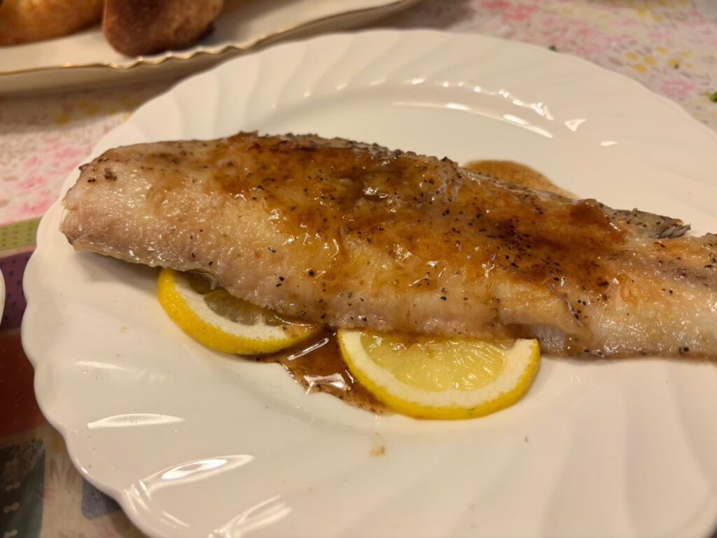 肉を食べない私には舌平目のムニエルを。年末に泉佐野の漁港まで買い出しに行ったというお魚も、滞在中にいろいろと堪能させていただきました。